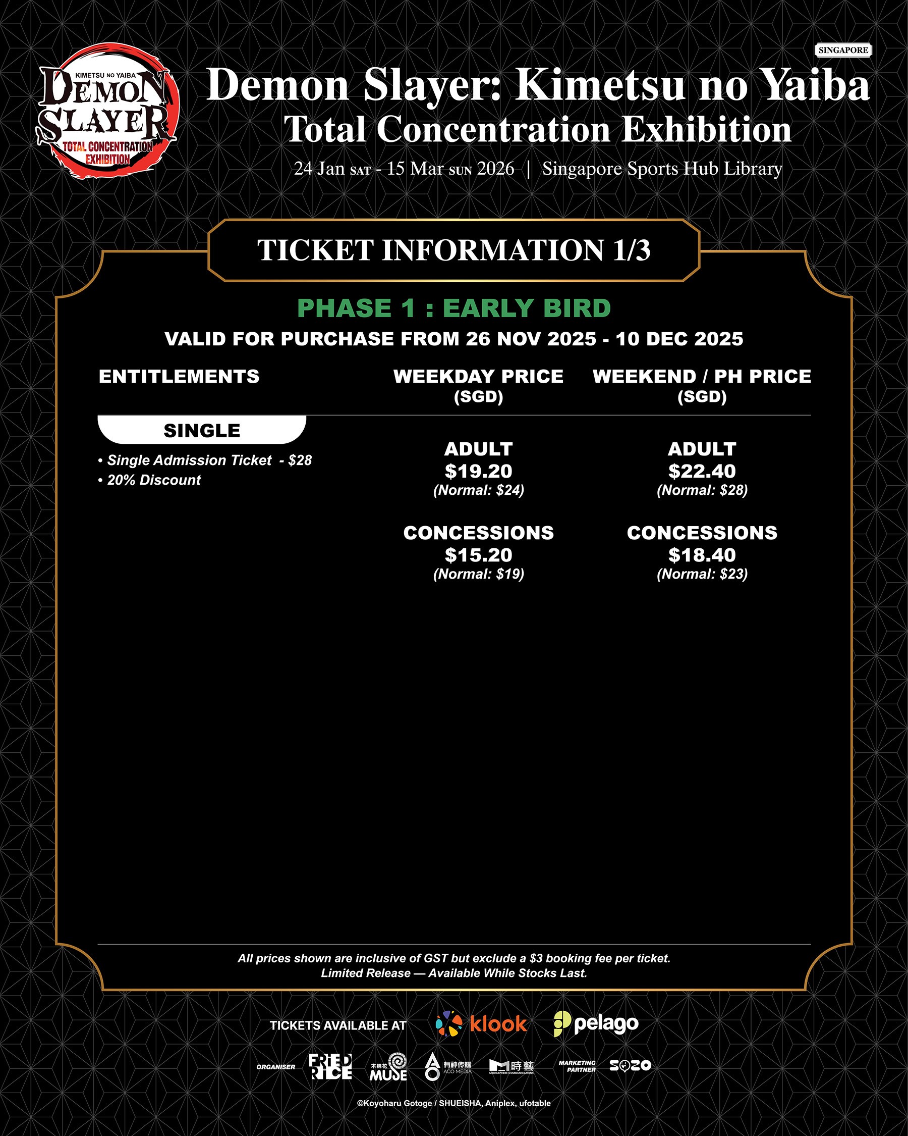 Each ticket (except VIP Tickets) include a limited-edition Demon Slayer Souvenir Card (worth $10)